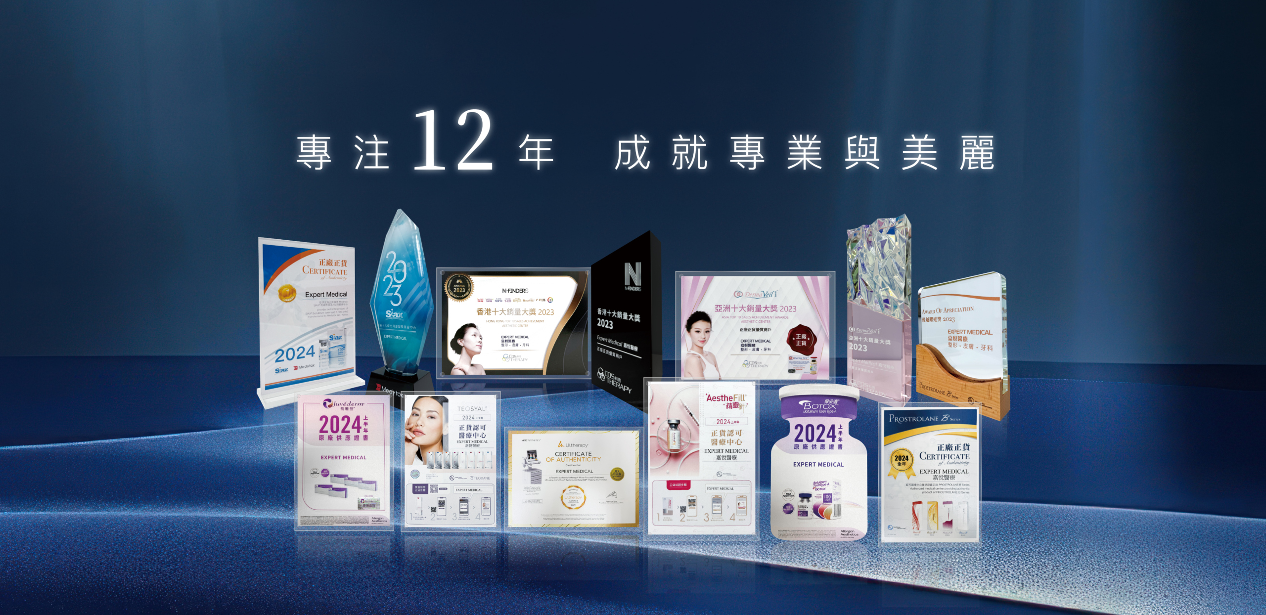 2017年獲得由著名藥廠Teosyal頒發十大正廠正貨銷售醫學美容中心獎