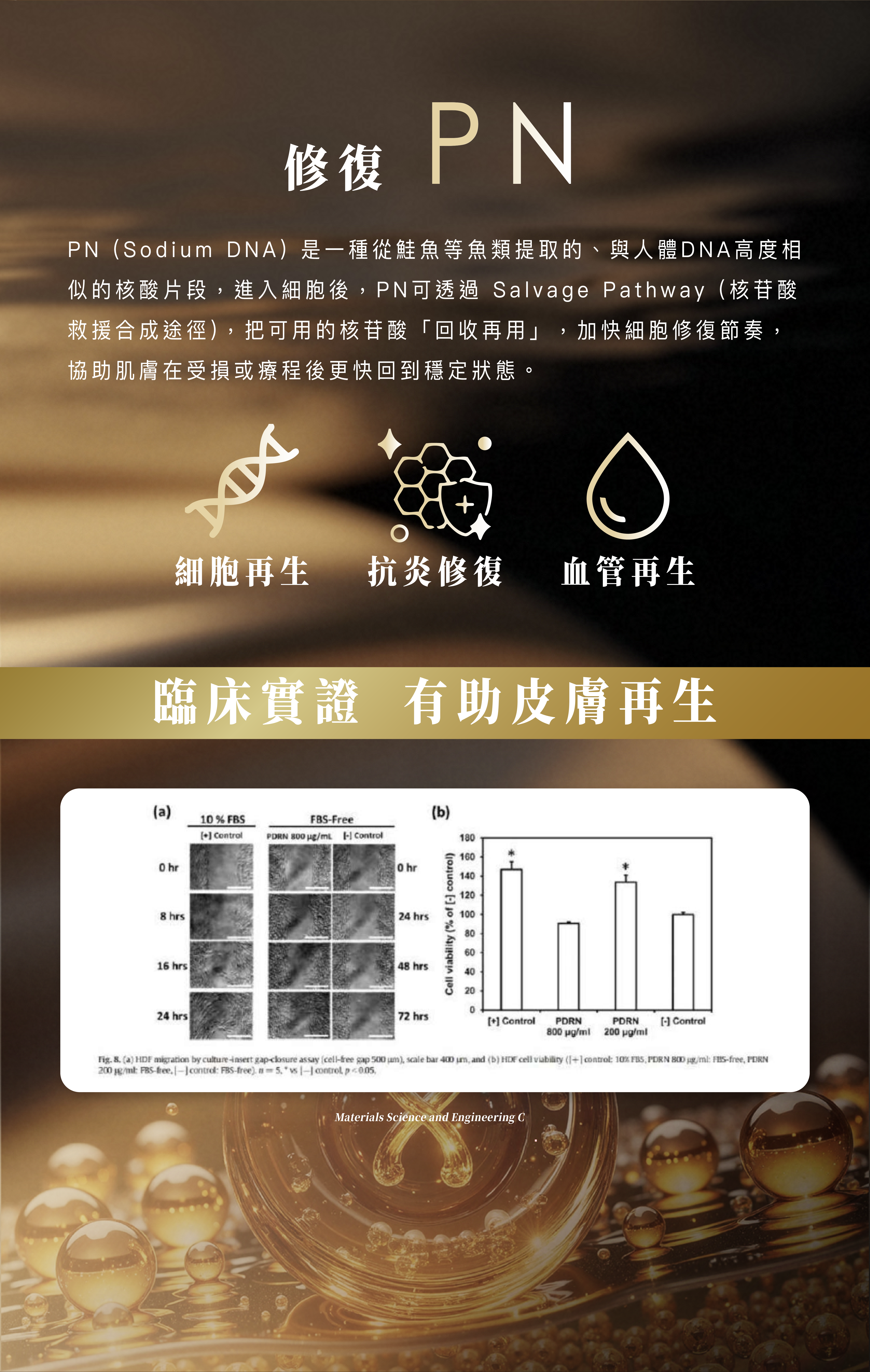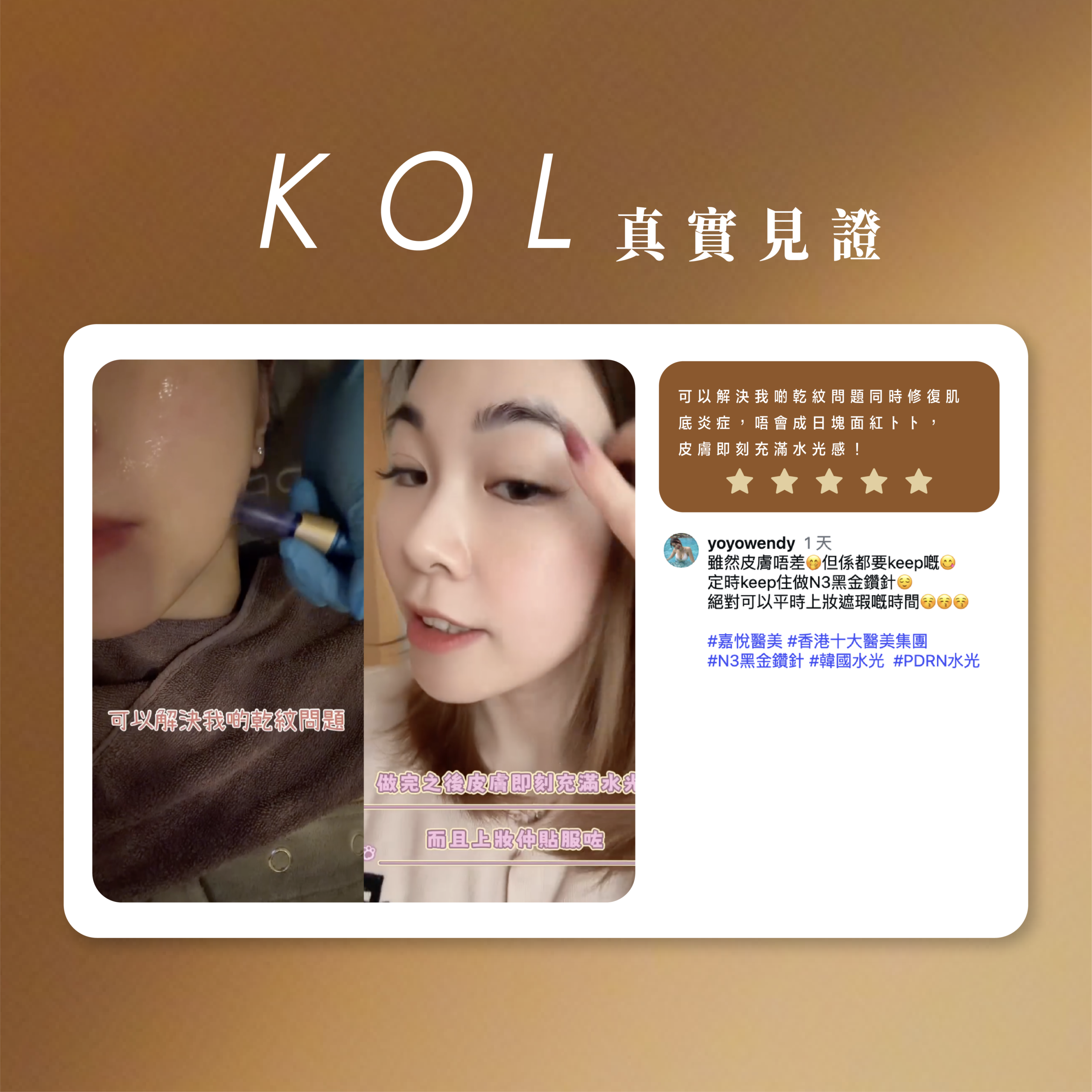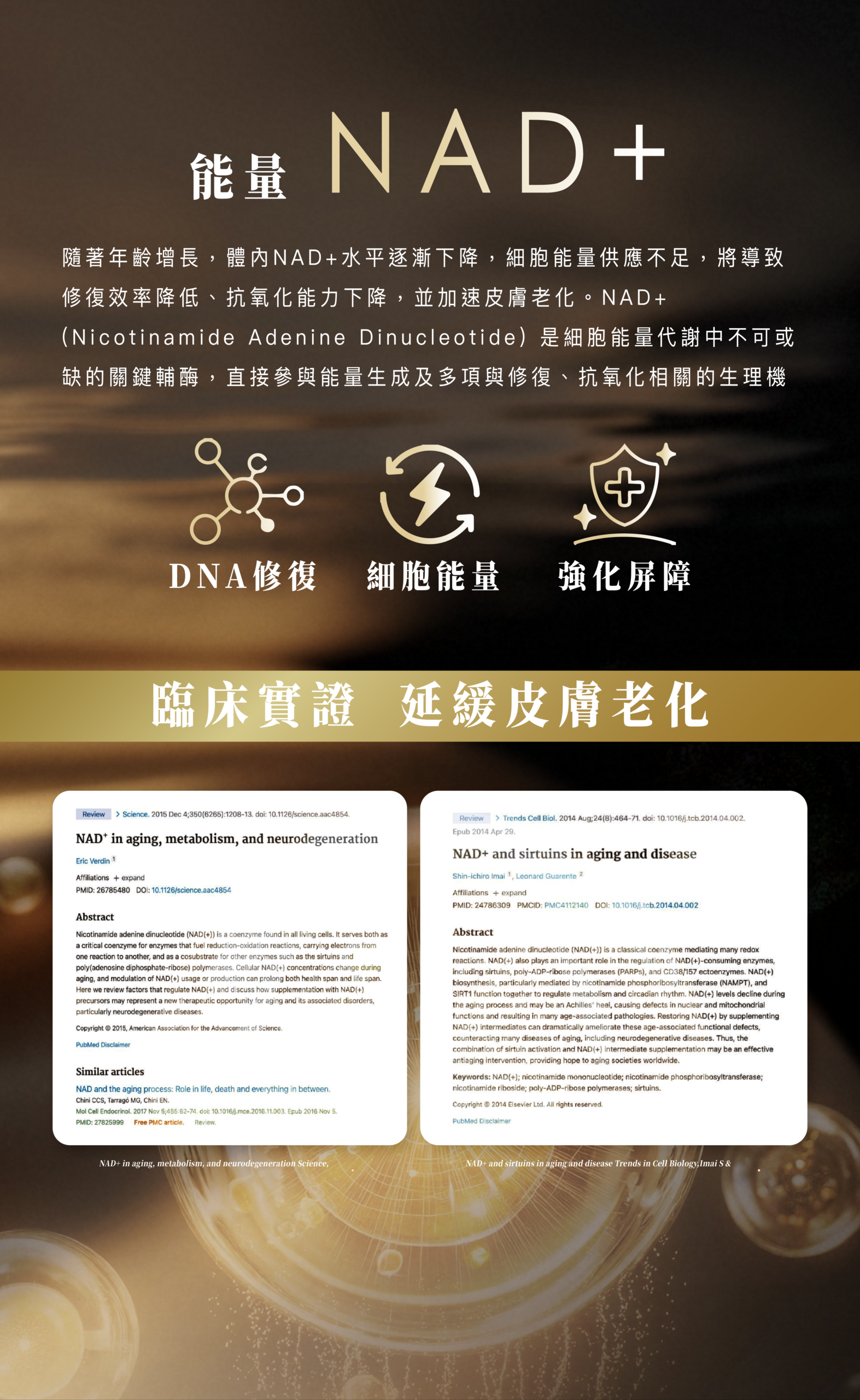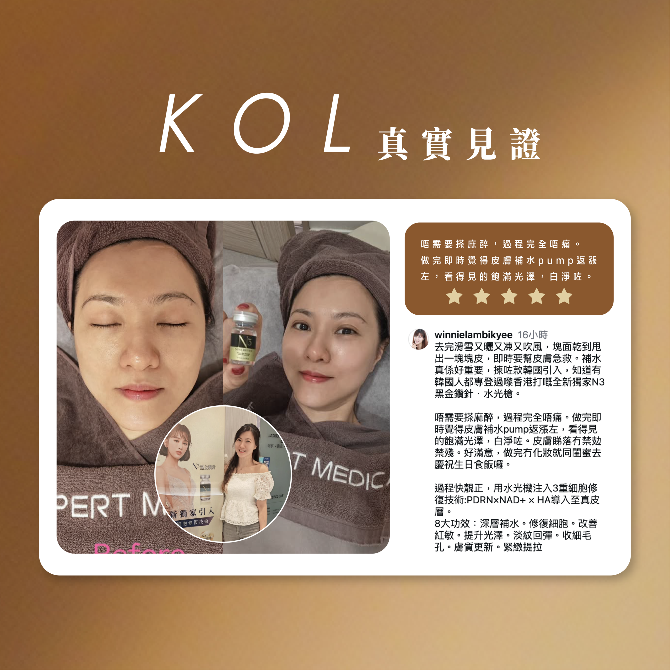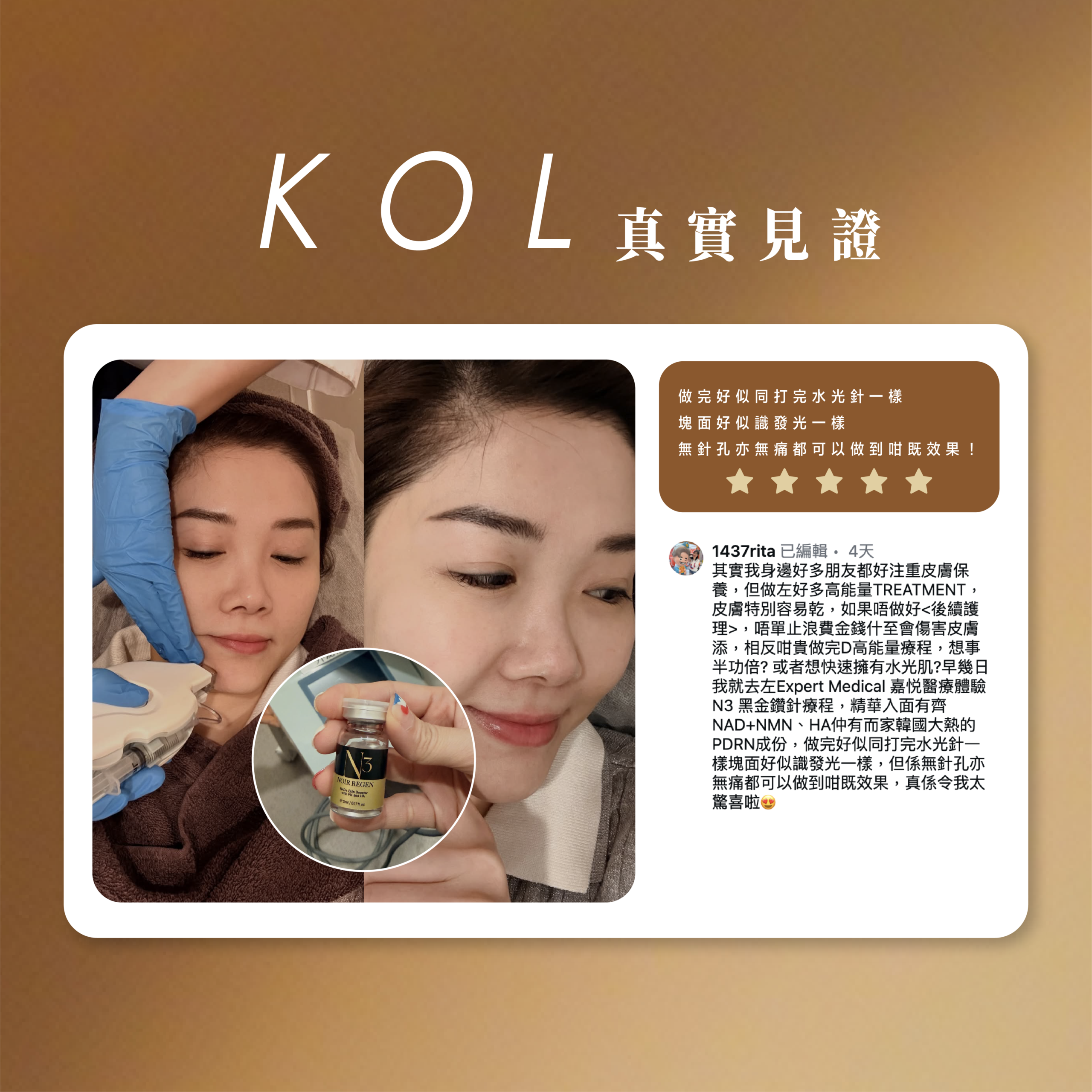 N³ 黑金鑽針結合 PN、NAD+ 及透明質酸,針對暗沉、乾燥、粗糙及初老肌膚,從肌底修復與補水,提升膚質細緻度與光澤感。